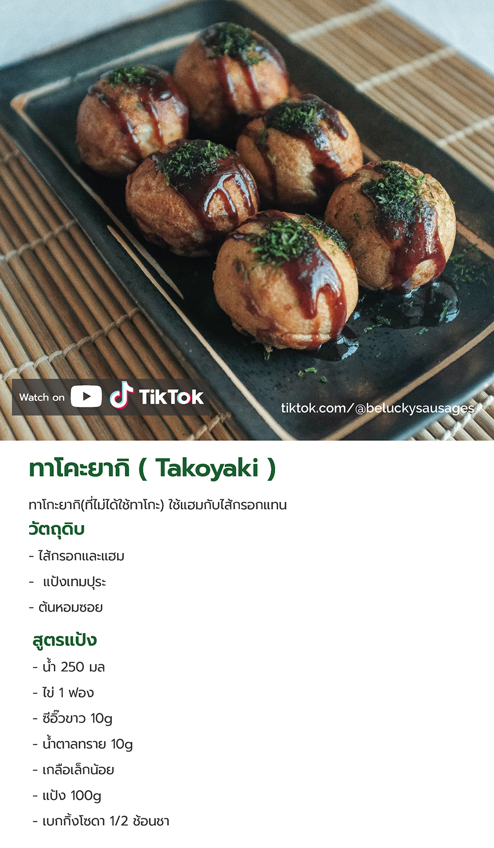 ไส้กรอกหมูผสมไก่บดละเอียดและรมควันเบา ๆ ขนาด 4 นิ้ว (ต้องลอกพลาสติกออกก่อนรับประทาน)