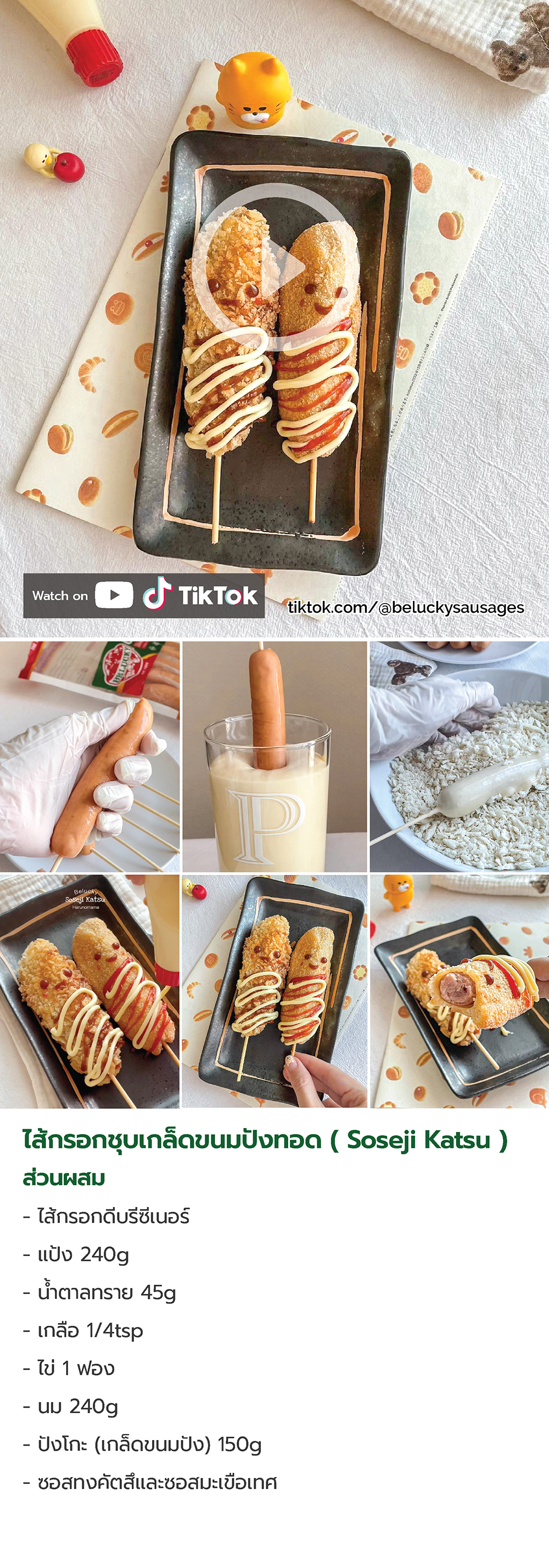 ไส้กรอกหมู สไตล์เยอรมัน บดหยาบ บรรจุในไส้ธรรมชาติ (ไส้แกะ) รมควัน ชิ้นเล็ก